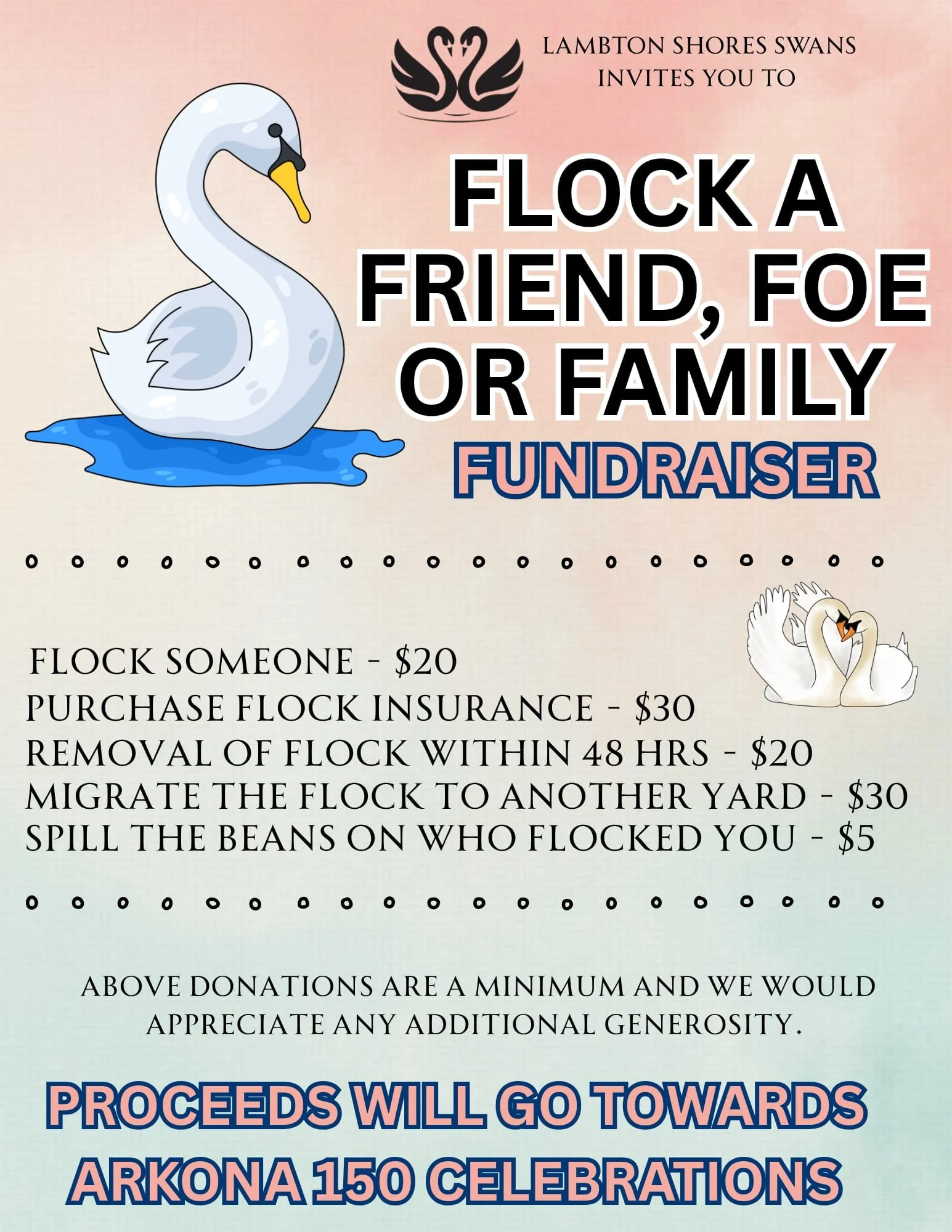The Lambton Shores Swans are thrilled to launch an all-new community fundraiser — Flock A Friend, Foe or Family Member!